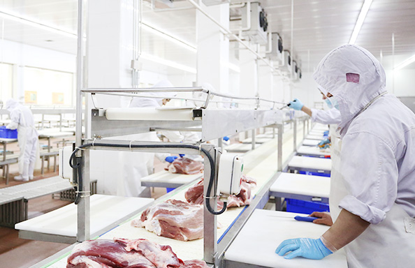 賓西肉業(yè)項目于2009年正式啟動,車間全部按歐盟衛(wèi)生標(biāo)準(zhǔn)設(shè)計建造。全套引進德國伴斯、荷蘭斯托克公司的生豬屠宰、分割系統(tǒng)。具備年屠宰分割50萬頭生豬,加工18萬噸冷鮮、速凍產(chǎn)品以及8萬噸高檔肉制品產(chǎn)能,產(chǎn)品達到出口歐州、中東、日、韓等國家和地區(qū)的標(biāo)準(zhǔn)。